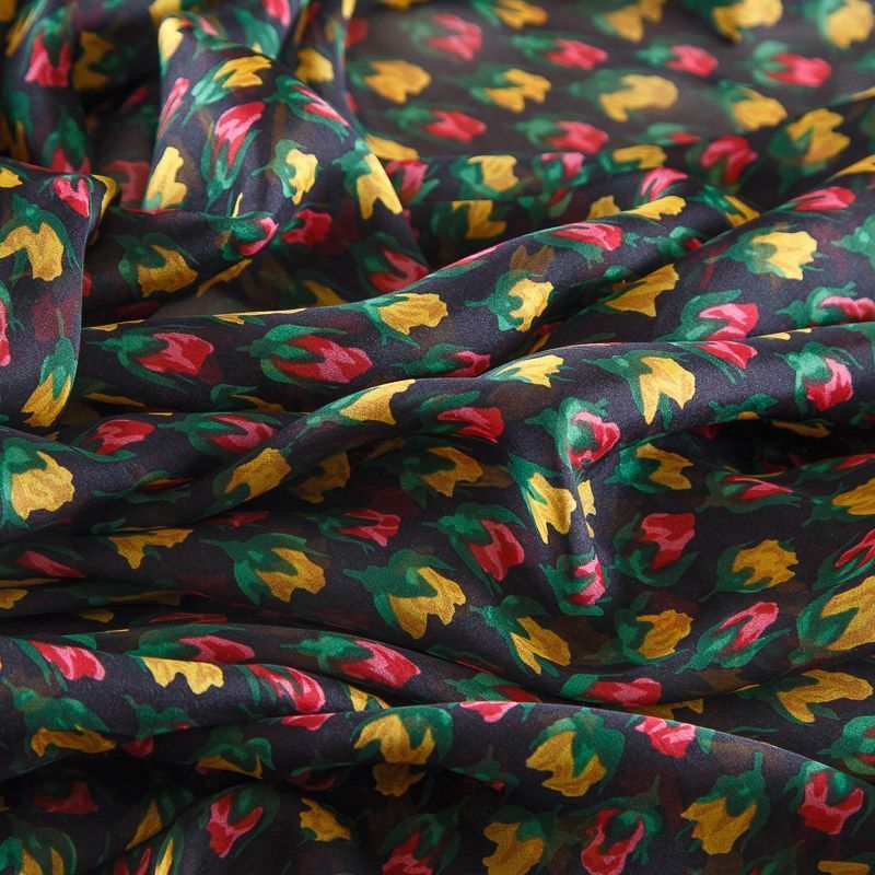 Шифон шелковый 068-17094 черный принтованный