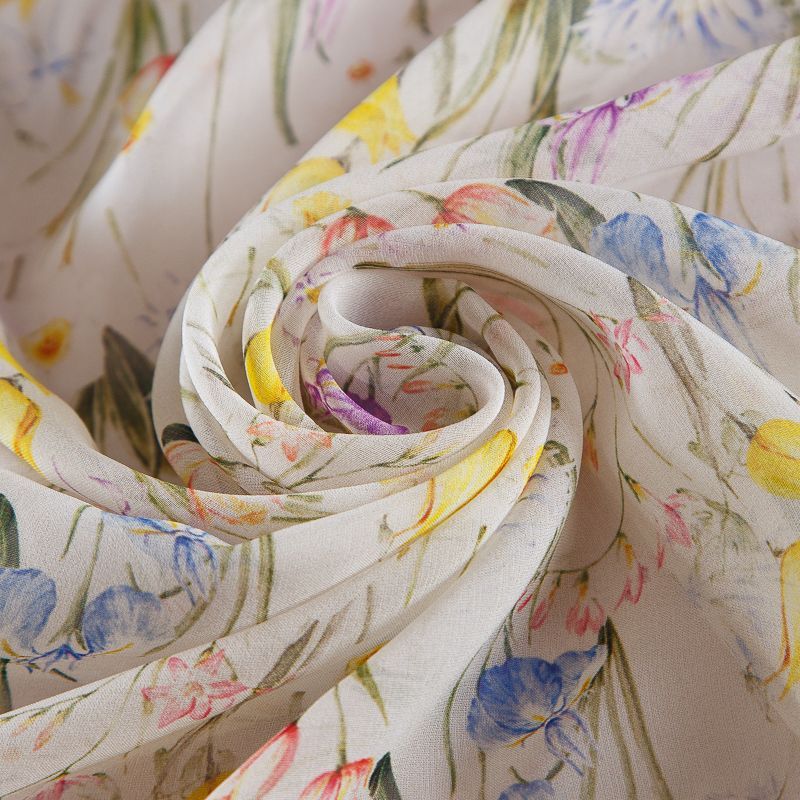 Шифон шелковый 068-19177 молочный принтованный в Уфе