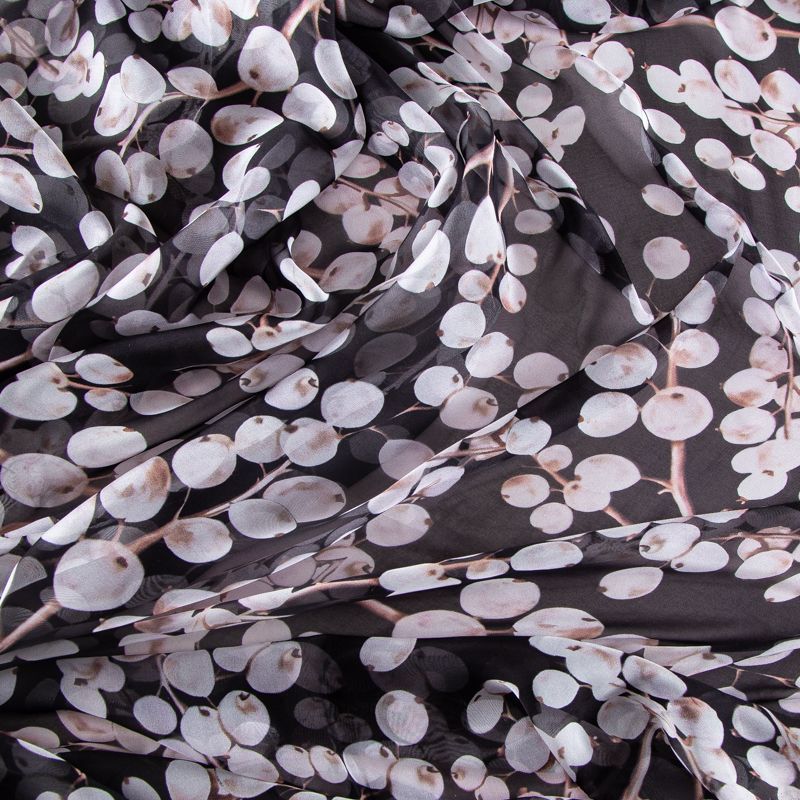 Шифон шелковый 068-20075 черный принтованный