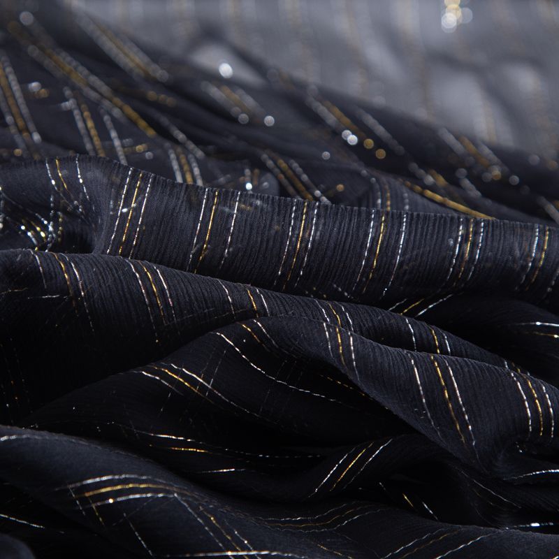 Шифон шелковый с люрексом 068-20346 черный в Уфе