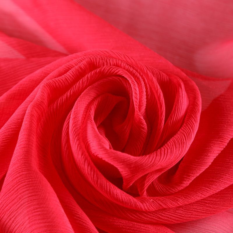 Воздушная шелковая жатая ткань, легкая, тонкая, полупрозрачная. На ощупь шифон-жатка очень мягкий и приятный, не тянется. Подойдет для пошива тончайших воздушных блуз, изумительных вечерних и летних платьев в пол, коротких коктейльных платьев, топов, блузок, туник и элегантных шарфов.