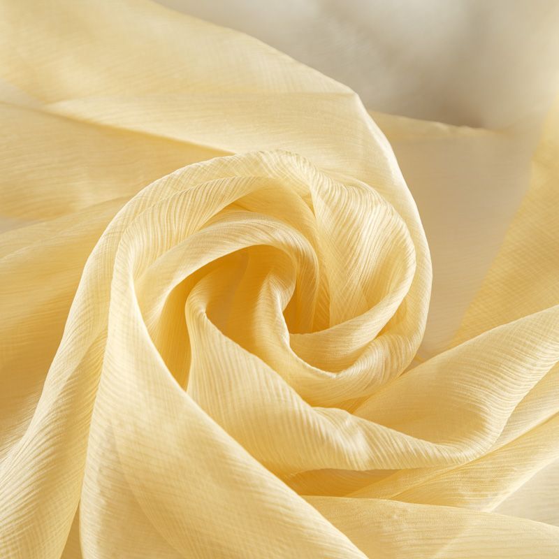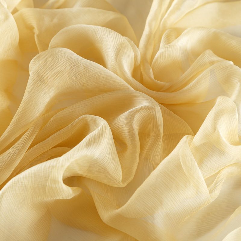 Воздушная шелковая жатая ткань, легкая, тонкая, полупрозрачная. На ощупь шифон-жатка очень мягкий и приятный, не тянется. Подойдет для пошива тончайших воздушных блуз, изумительных вечерних и летних платьев в пол, коротких коктейльных платьев, топов, блузок, туник и элегантных шарфов.