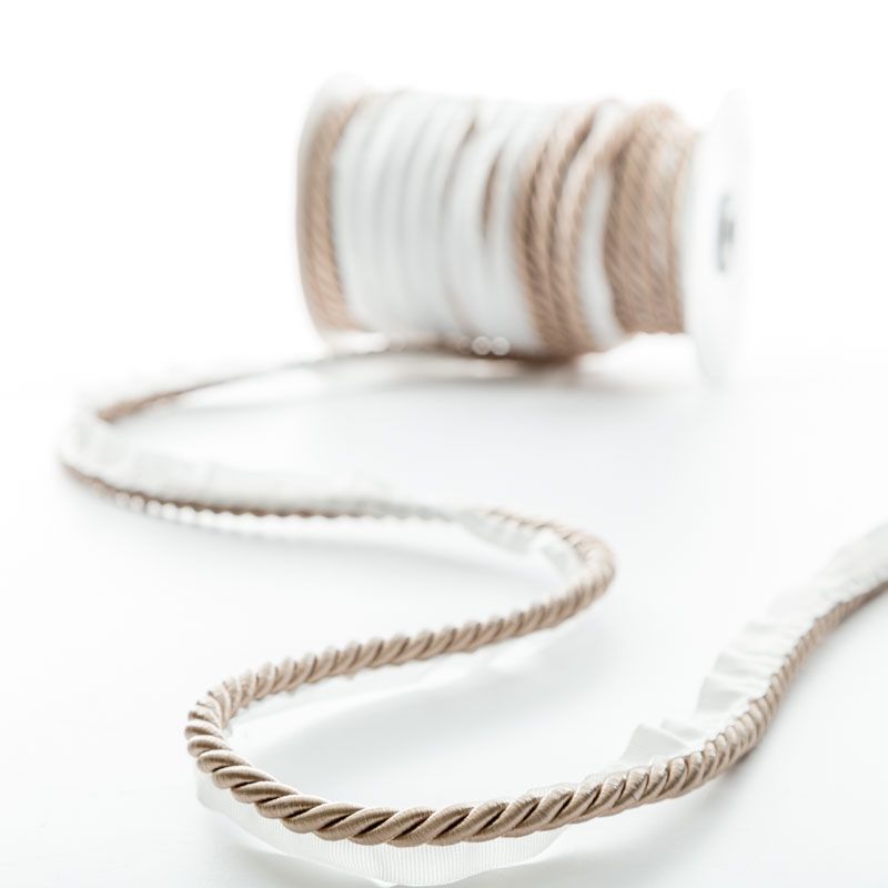 Декоративный витой круглый шнур, снабженый тесьмой для втачивания в стыковочный шов изделия. Применяется для отделки мягкой мебели, чехлов, декорирования домашнего текстиля, штор, покрывал, подушек. Позволяет изделию сохранять форму, образуя каркас. Диаметр шнура - 8 мм.