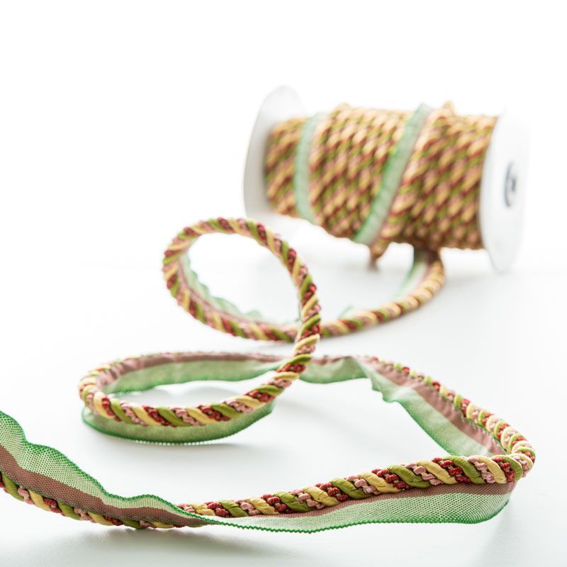 Декоративный витой круглый шнур, снабженый тесьмой для втачивания в стыковочный шов изделия. Применяется для отделки мягкой мебели, чехлов, декорирования домашнего текстиля, штор, покрывал, подушек. Позволяет изделию сохранять форму, образуя каркас. Диаметр шнура - 8 мм.