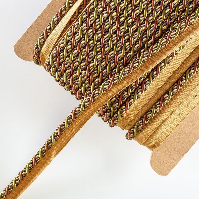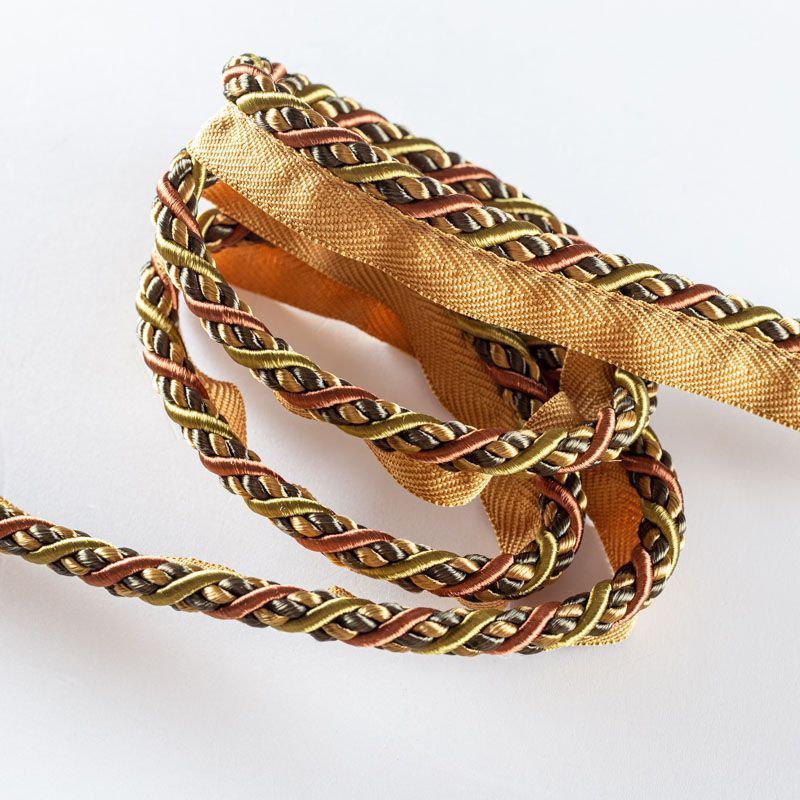 Декоративный витой круглый шнур, снабженый тесьмой для втачивания в стыковочный шов изделия. Применяется для отделки мягкой мебели, чехлов, декорирования домашнего текстиля, штор, покрывал, подушек. Позволяет изделию сохранять форму, образуя каркас. Диаметр шнура - 8 мм. Общая ширина шнура с тесьмой - 2 см.