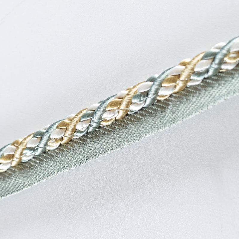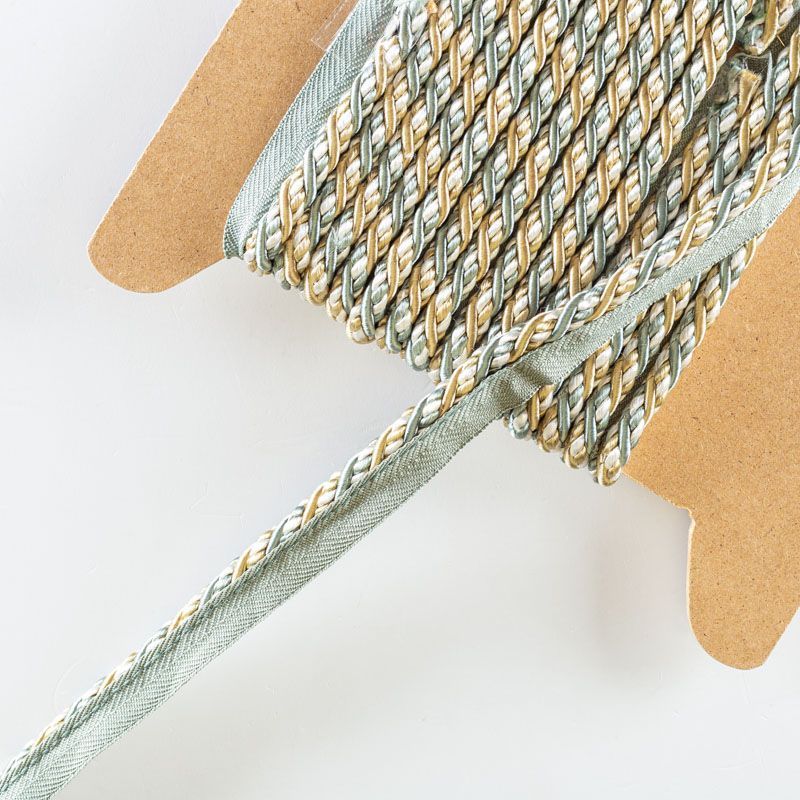 Декоративный витой круглый шнур, снабженый тесьмой для втачивания в стыковочный шов изделия. Применяется для отделки мягкой мебели, чехлов, декорирования домашнего текстиля, штор, покрывал, подушек. Позволяет изделию сохранять форму, образуя каркас. Диаметр шнура - 8 мм. Общая ширина шнура с тесьмой - 2 см.