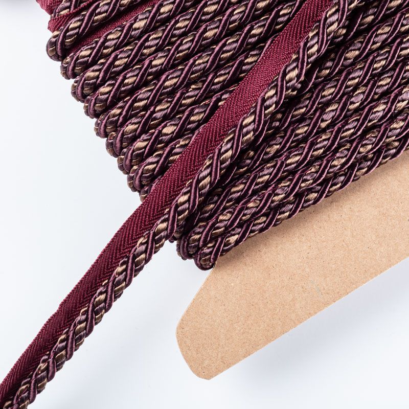 Декоративный витой круглый шнур, снабженый тесьмой для втачивания в стыковочный шов изделия. Применяется для отделки мягкой мебели, чехлов, декорирования домашнего текстиля, штор, покрывал, подушек. Позволяет изделию сохранять форму, образуя каркас. Диаметр шнура - 8 мм. Общая ширина шнура с тесьмой - 2 см.