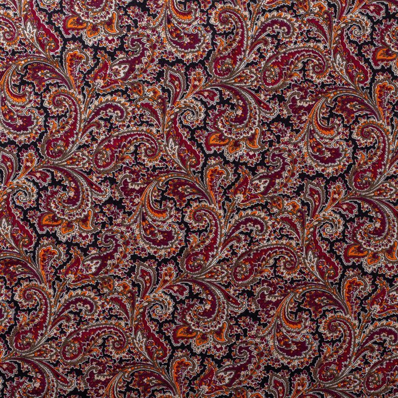 Плательно-блузочный штапель с принтом пейсли в коричнево-желтых оттенках на черном фоне. Мягкий, тонкий, нежный, пластичный, приятный на ощупь, хорошо драпируется, практичный. Подойдет для пошива платья, топа, блузки, рубашки, юбки, летних брюк.