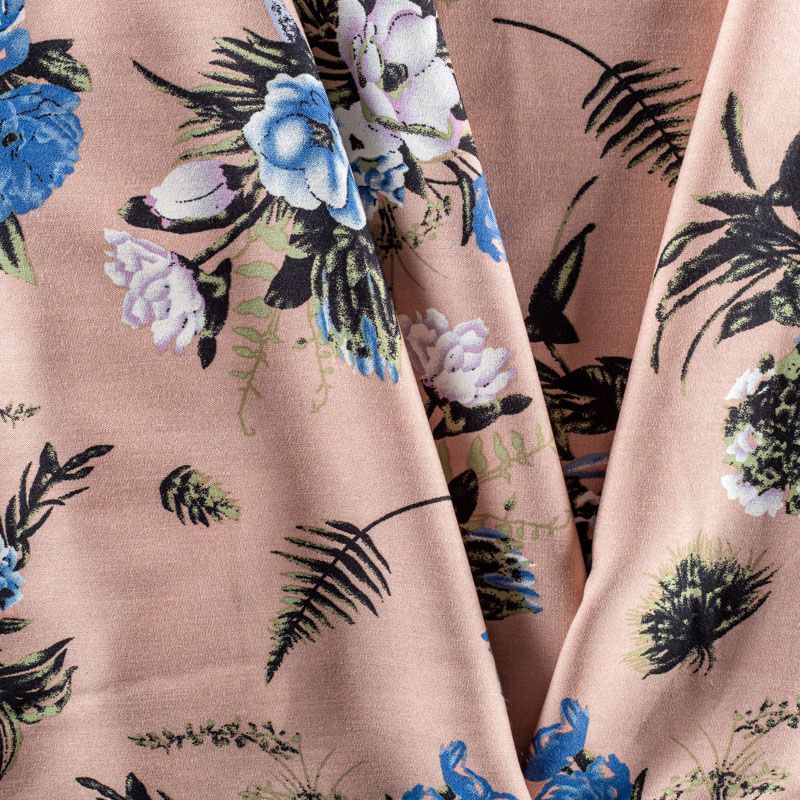 Плательно-блузочный штапель с цветочным принтом на бежевом фоне. Мягкий, тонкий, нежный, пластичный, приятный на ощупь, хорошо драпируется, практичный. Подойдет для пошива платья, топа, блузки, рубашки, юбки, летних брюк.