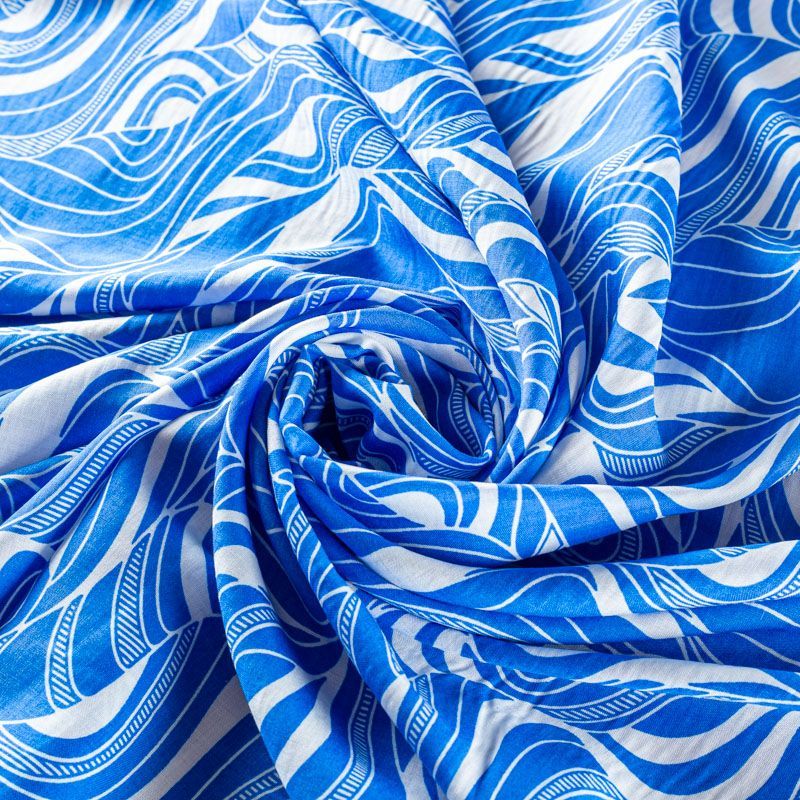 Плательно-блузочный штапель с абстрактным принтом на белом фоне. Мягкий, тонкий, нежный, пластичный, приятный на ощупь, хорошо драпируется, практичный. Подойдет для пошива платья, топа, блузки, рубашки, юбки, летних брюк.