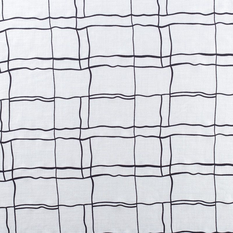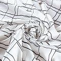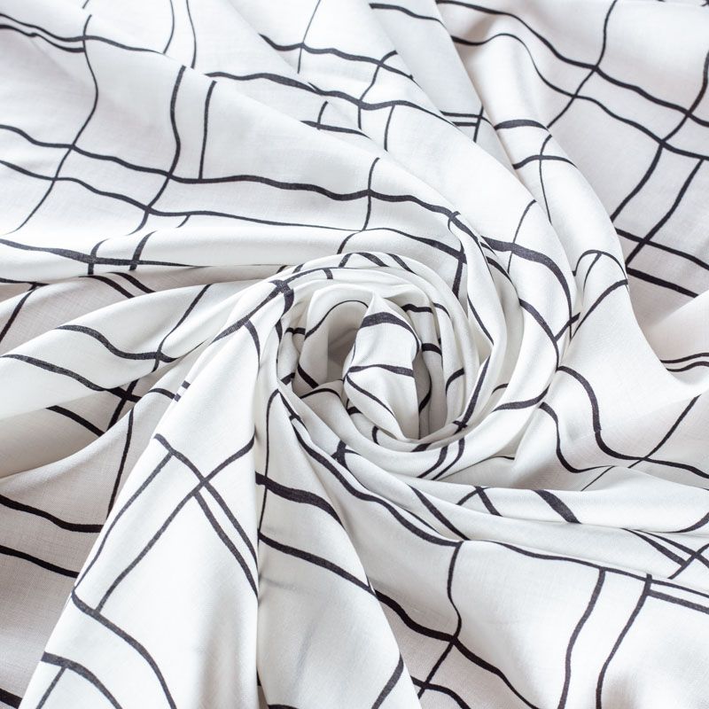 Плательно-блузочный штапель с геометрическим принтом, образующим клетку, на белом фоне. Мягкий, тонкий, нежный, пластичный, приятный на ощупь, хорошо драпируется, практичный. Подойдет для пошива платья, топа, блузки, рубашки, юбки, летних брюк.