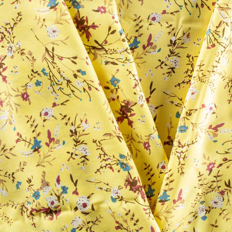 Плательно-блузочный штапель с цветочным принтом на желтом фоне. Мягкий, тонкий, нежный, пластичный, приятный на ощупь, хорошо драпируется, практичный. Подойдет для пошива платья, топа, блузки, рубашки, юбки, летних брюк.