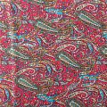 Плательно-блузочный штапель с ярким узором пейсли на малиново-красном фоне. Ткань мягкая, тонкая, нежная, пластичная, приятная на ощупь, хорошо драпируется, практичная. Подойдет для пошива платья, топа, блузки, рубашки, юбки, летних брюк.