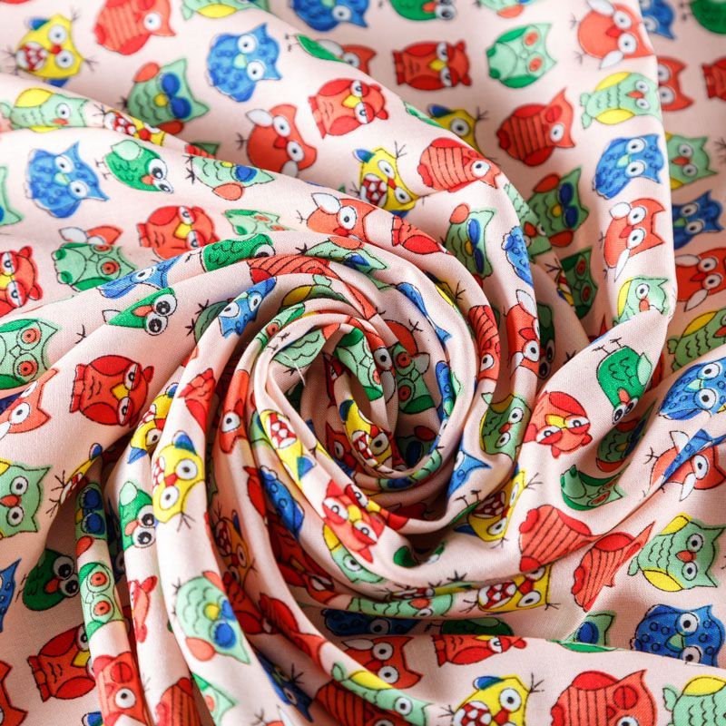 Плательно-блузочный штапель с детским принтом на нежно-розовом фоне. Ткань мягкая, тонкая, нежная, пластичная, приятная на ощупь, хорошо драпируется, практичная. Подойдет для пошива платья, топа, блузки, рубашки, юбки, летних брюк, домашней и детской одежды.