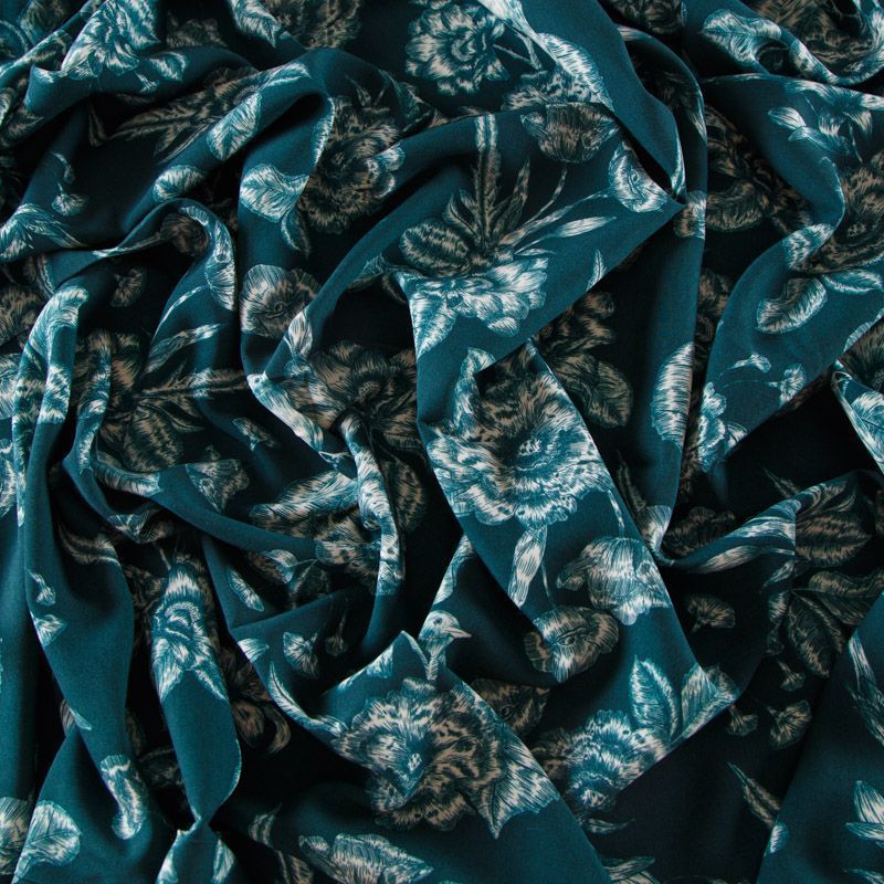 Штапель 069-12290 темно-бирюзовый принтованный в Уфе