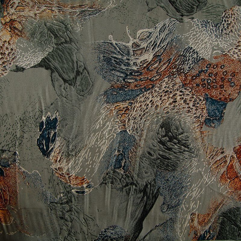 Штапель 069-17857 оливково-серый принтованный