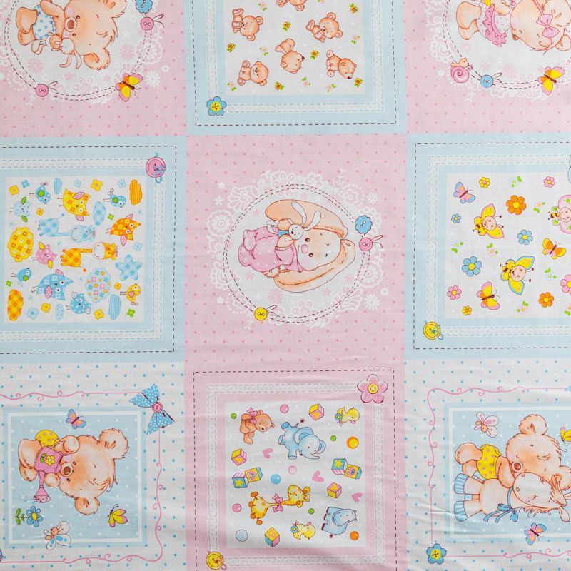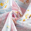 кань полотняного переплетения, тонкая, легкая и мягкая. Не вызывает аллергии, дышит и хорошо впитывает влагу. Милый детский принт в розово-голубых оттенках белом фоне прекрасно подойдет для пошива детской одежды, нательного белья, халатов и пижам.