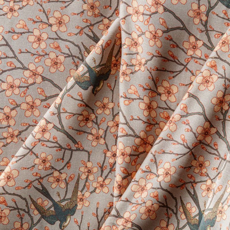 Шикарный итальянский тенсел в приглушенных оттенках с нежным весенним принтом. Эффектная рисунок, который будет потрясающе смотрется в платье, юбке, рубашке, костюме в пижамном стиле. Ткань натуральная , средней плотности, дышит , не светит, немного тянется, имеет характерную диагональную фактуру. Очень приятна к телу, мягко лежит в складке и драпируется, красиво ниспадает фалдами.