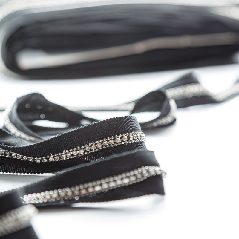 Тесьма декоративная 25 мм со стразами PA0740 черный