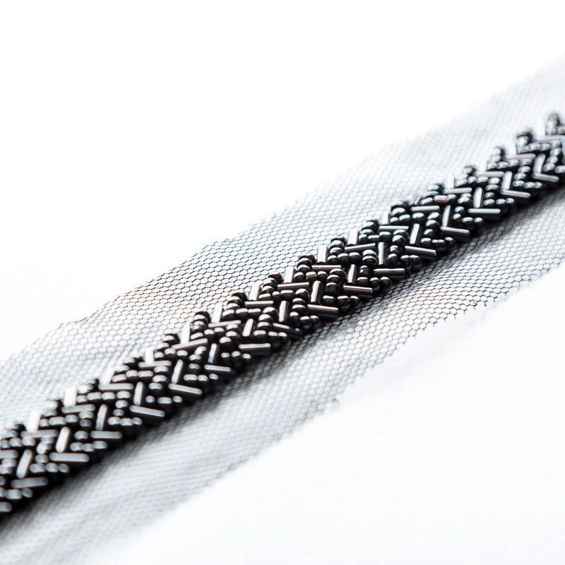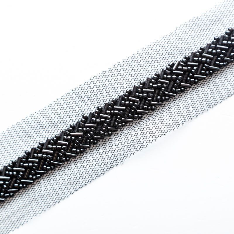 Тесьма декоративная 35 мм со стеклярусом PA0417 черный