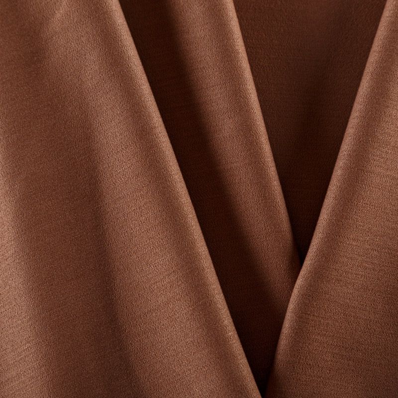 Костюмно-плательная ткань в ореховом оттенке. Ткань пластичная, очень приятная на ощупь, драпируется в слегка держащие форму складки, поверхность с полотняным переплетением, тянется за счет эластана в составе. Подойдет для всех видов изделий - платьев, сарафанов, модных жакетов, жилетов, брючных и юбочных костюмов, кюлотов, брюк-палаццо, юбок различных фасонов.
