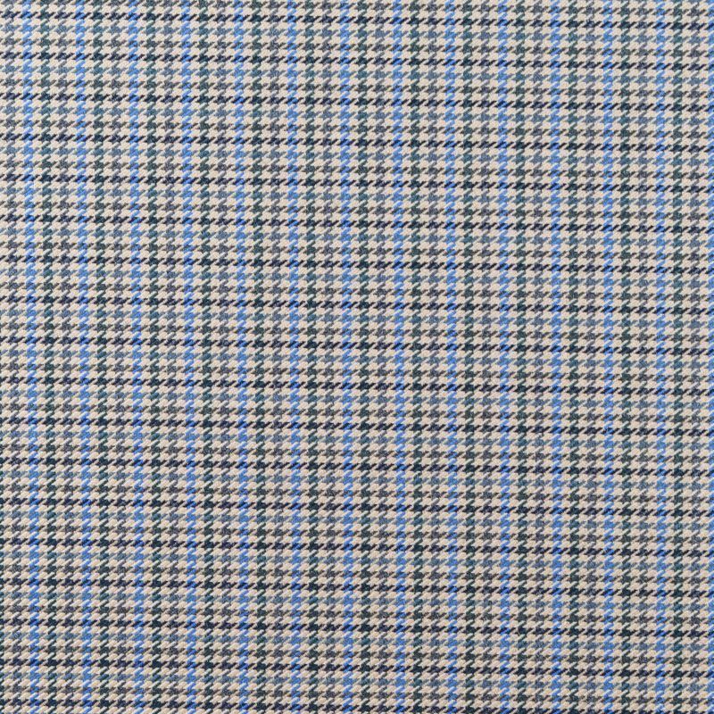 Итальянская костюмно-плательная шерсть средней плотности в актуальном бежевом оттенке с классическим узором гусиная лапка в черно-синиих цветах. Поверхность ткани имеет выраженное диагональное плетение, на ощупь гладкая, полированная благодаря содержанию шерсти ламы. Ткань очень мягкая, теплая, уютная, шерсть не колется, в носке очень комфортная. Подойдет для пошива стильного костюма, мужского пиджака, платья, жакета, юбки, шорт или легкого пальто для осенне-весеннего сезона.