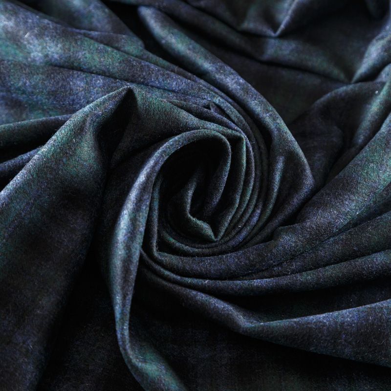 Итальянская шерстяная фланель в приглушенных синих и зеленых оттенках в клетку. Ткань костюмно-плательной плотности, очень мягкая, приятная на ощупь, не толстая, пластичная. Прерасно подойдет для пошива платья, сарафана, юбки, брюк, шорт, жакета, жилета, а также верхней одежды с дополнительным утеплителем.