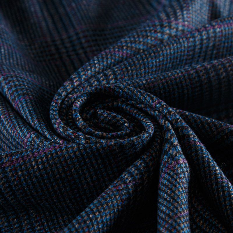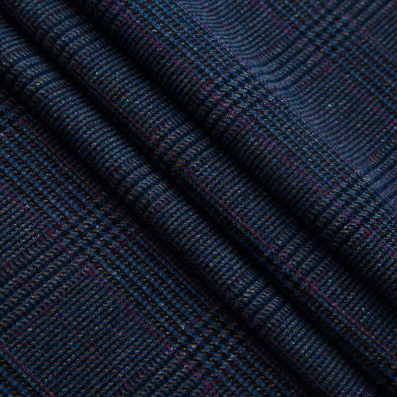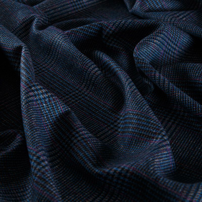 Итальянская костюмно-плательная смесовая ткань средней плотности в синем оттенке в клетку тартан. Ткань не сухая, пластичная, приятная на ощупь, почти не мнется, хорошо драпируется. Отлично подойдет на костюм, жилет, жакет, легкое пальто, юбку, брюки, платье, сарафан, шорты.