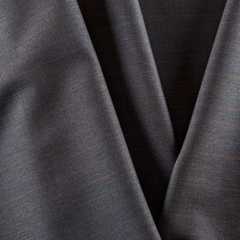 Итальянская шерстяная костюмно-плательная ткань средней плотности в сером оттенке в тонкую элегантную терракотовую полоску. Материал в меру мягкий и приятный на ощупь, немного тянется за счет эластана в составе, держит форму, хорошо драпируется и образует устойчивые складки. Ткань отлично подойдет на костюмы, юбки, брюки, платья, жакеты, для пошива школьной формы.