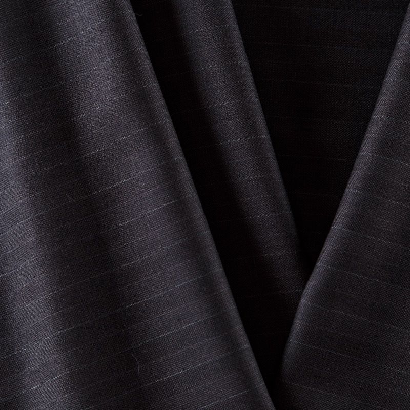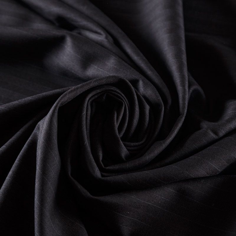 Итальяская костюмно-плательная шерсть черного цвета с жаккардовой полоской. Ткань средней плотности, очень приятная на ощупь, драпируется в слегка держащие форму складки, с полотняным переплетением, тянется. Подойдет для всех видов изделий - платьев, сарафанов, модных жакетов, жилетов, брючных и юбочных костюмов, кюлотов, брюк-палаццо, юбок различных фасонов.