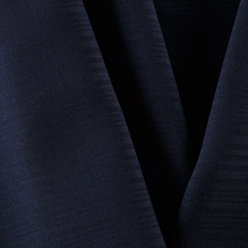 Итальяская костюмно-плательная шерсть средней плотности в темно-синем оттенке с жаккардовой полоской. Ткань пластичная, очень приятная на ощупь, драпируется в слегка держащие форму складки, с полотняным переплетением, тянется. Подойдет для всех видов изделий - платьев, сарафанов, модных жакетов, жилетов, брючных и юбочных костюмов, кюлотов, брюк-палаццо, юбок различных фасонов.