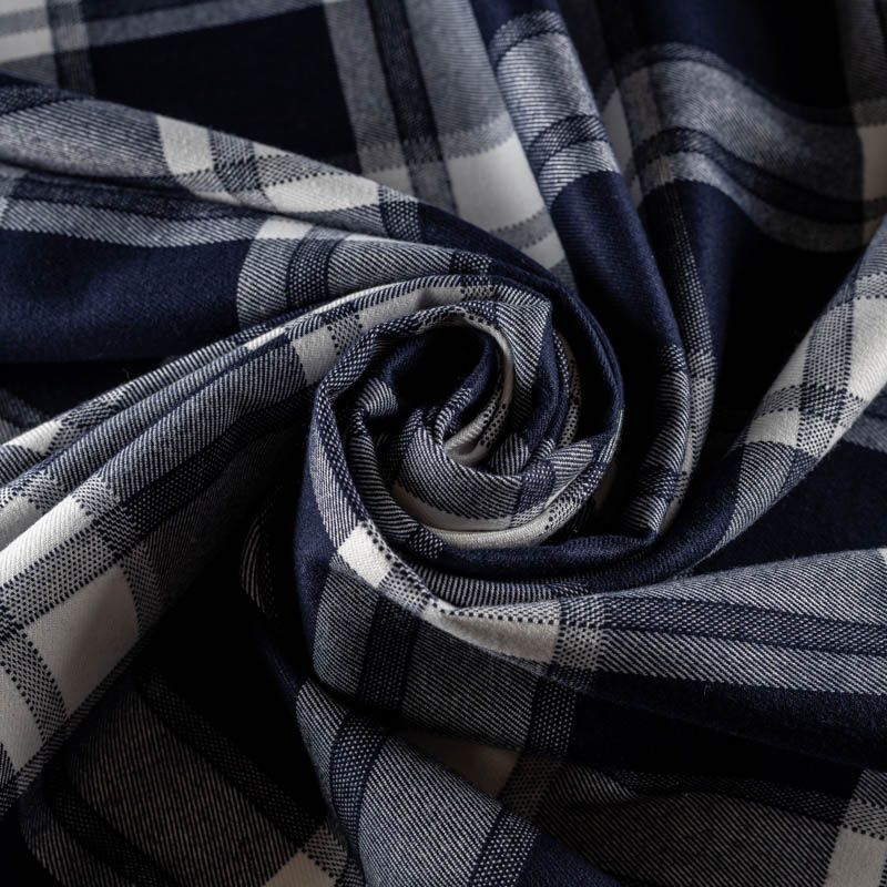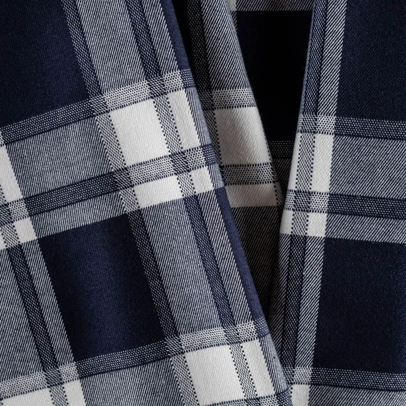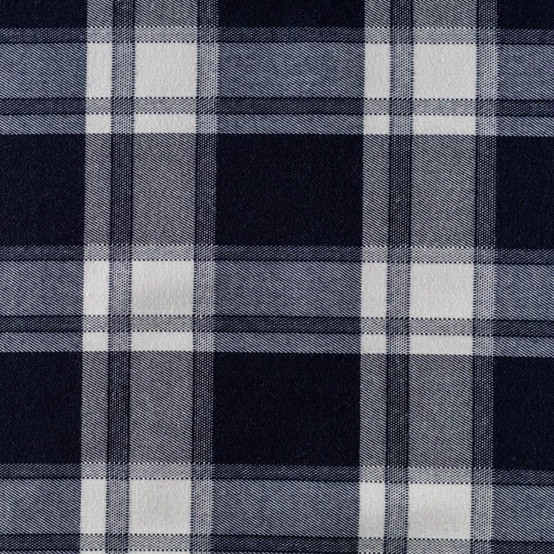 Ткань средней плотности, мягкая и приятная на ощупь, немного тянется, формоустойчива, хорошо драпируется и образует мягкие складки. Сочетание молочного и темно-синего цветов образует сложную красивую клетку тартан. Ткань отлично подойдет на костюмы, юбки, брюки, платья, жакеты, для школьной формы.