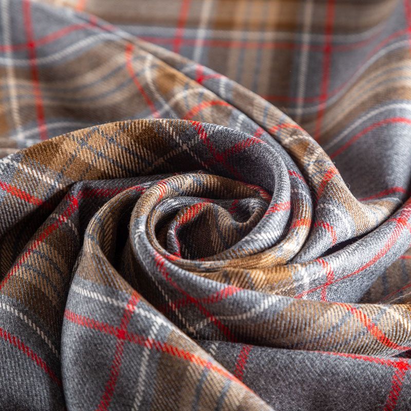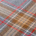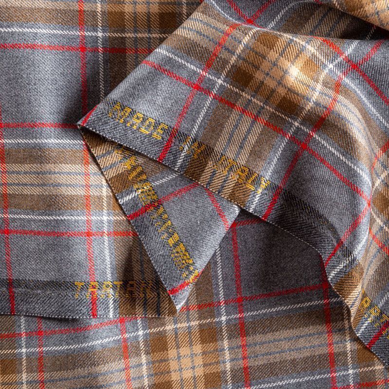 Итальянская костюмная шерсть средней плотности, мягкая и приятная на ощупь, формоустойчива, хорошо драпируется и образует мягкие складки. Сочетание линий карамельного, красного и белого цветов образует сложную красивую клетку тартан. Ткань отлично подойдет на костюмы, юбки, брюки, платья, жакеты, для школьной формы.