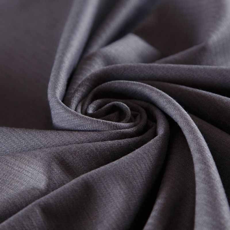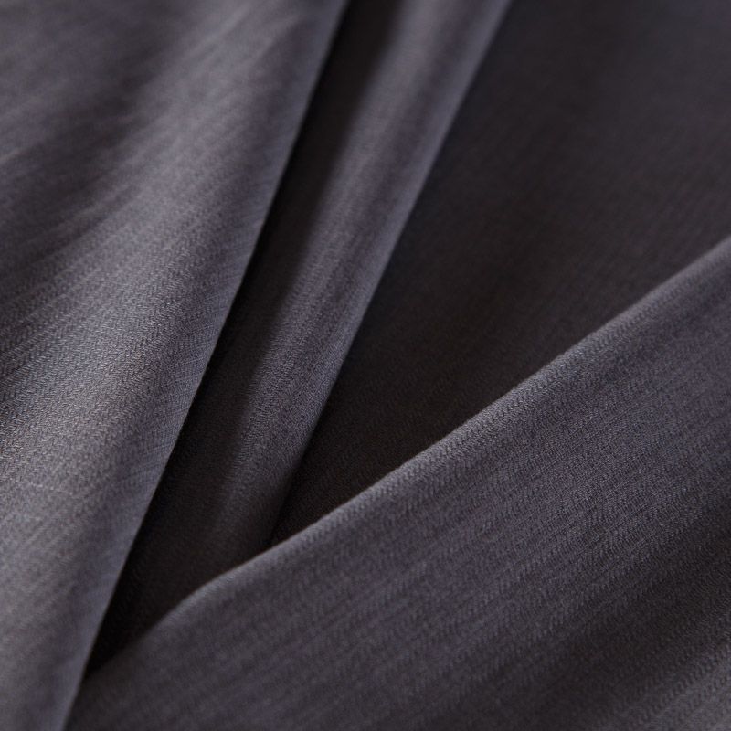 Костюмно-плательная смесовая ткань средней плотности, тонкая, очень приятная на ощупь, драпируется в слегка держащие форму складки, на поверхности частые тонкие жаккардовые полоски в тон ткани, направленные вдоль кромки. Подойдет для всех видов изделий - платьев, сарафанов, модных жакетов, жилетов, брючных и юбочных костюмов, кюлотов, брюк-палаццо, юбок различных фасонов.