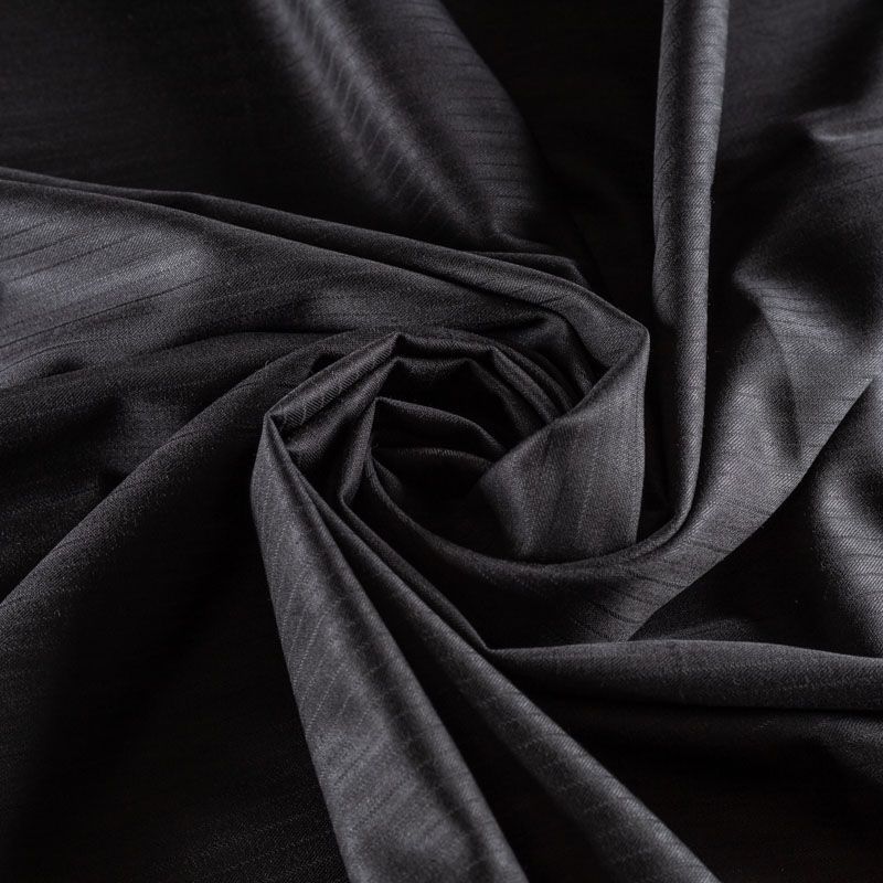 Костюмно-плательная смесовая ткань средней плотности, тонкая, очень приятная на ощупь, драпируется в слегка держащие форму складки, на поверхности частые тонкие жаккардовые полоски в тон ткани, направленные вдоль кромки. Подойдет для всех видов изделий - платьев, сарафанов, модных жакетов, жилетов, брючных и юбочных костюмов, кюлотов, брюк-палаццо, юбок различных фасонов.