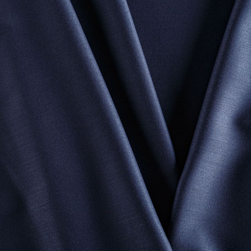 Костюмно-плательная ткань темно-синего оттенка с шероховатой поверхностью, упругая, практически не мнется, отлично сохраняет форму изделия, достаточно мягкая, пластичная, хорошо тянется за счет эластана в составе. Подойдет для пошива костюмов, брюк, юбки, платья, комбинезона.