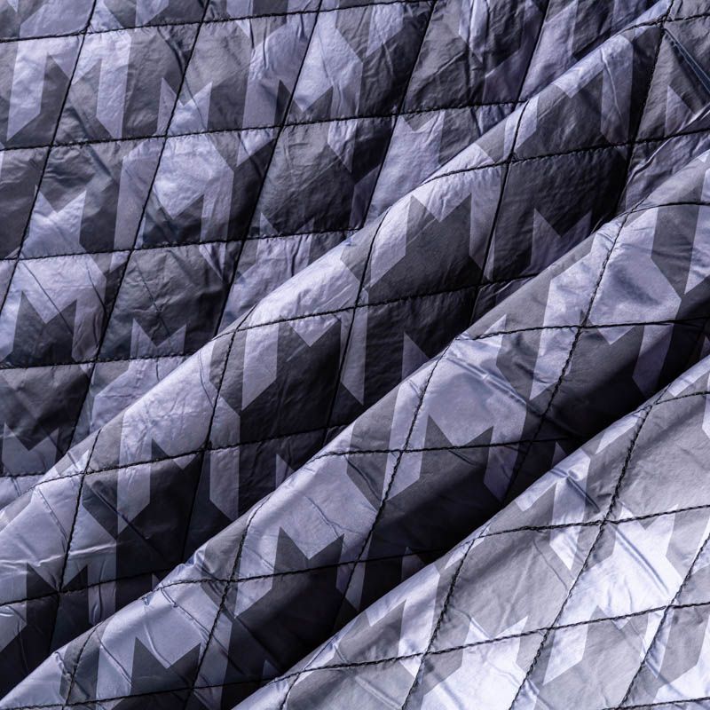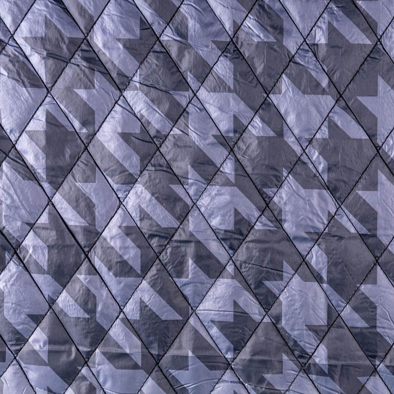 Двухслойная курточная ткань сложного пепельно-лавандового оттенка с необычным для стежки принтом - гусиная лапка, простеганная не крупными ромбами размером 4х4 см. Нижний слой - синтепон, верхний - полиэстер, по качеству напоминает болонь. Очень мягкая и легкая, пластичная, хорошо драпируется. Прекрасно подойдет для  пошива легких пальто, курток, жилетов, накидок-кейпов, объемных сумок.