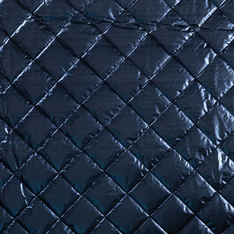 Трехслойная итальянская курточная ткань космического синего оттенка с легким эффектом металлик, простеганная не крупными ромбами размером 3х3 см. Нижний, черного цвета, заменяет подклад и верхний слой - полиэстер, по качеству напоминает болонь, между ними синтепон. Ткань легкая, пластичная, хорошо драпируется. Прекрасно подойдет для пошива легких пальто, курток, бомберов, жилетов, накидок-кейпов, объемных сумок, одежды для домашних питомцев, туристического снаряжения.