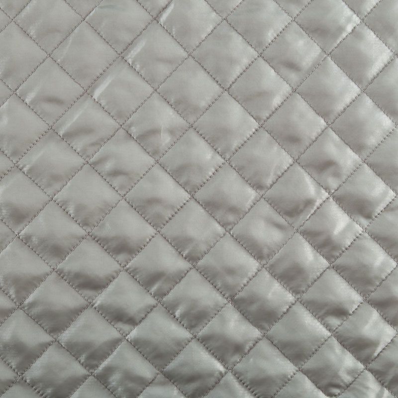 Двухслойная курточная ткань серо-зеленого оттенка, простеганная не крупными ромбами размером 3х3 см. Нижний слой - синтепон, верхний - полиэстер, по качеству напоминает болонь. Очень мягкая и легкая, пластичная, хорошо драпируется. Прекрасно подойдет для  пошива легких пальто, курток, жилетов, накидок-кейпов, объемных сумок.