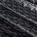 Итальянская двухслойная курточная ткань черного цвета с глитерным принтом лого известного бренда, простеганная вертикальными линиями вдоль кромки. Нижний слой - синтепон, верхний - полиэстер, по качеству напоминает болонь. Очень мягкая и легкая, пластичная, хорошо драпируется. Прекрасно подойдет для пошива легких пальто, курток, жилетов, накидок-кейпов, комбинезонов, объемных сумок, одежды для домашних питомцев, туристического снаряжения.