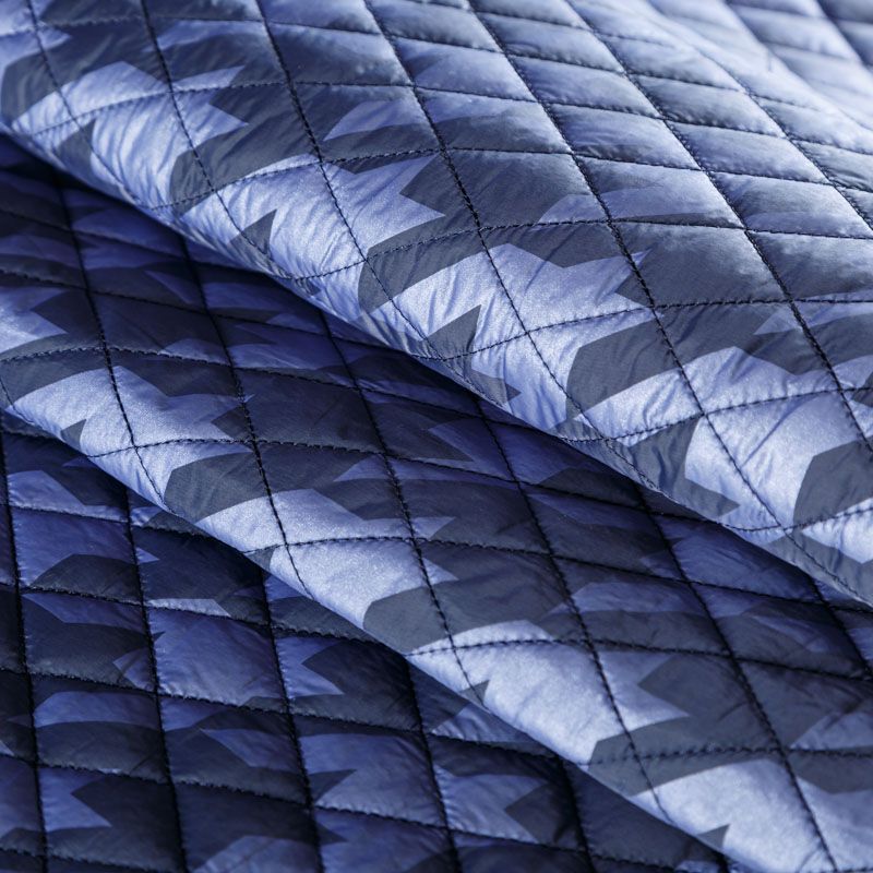 Двухслойная курточная ткань сложного пепельно-лавандового оттенка с необычным для стежки принтом - гусиная лапка, простеганная не крупными ромбами размером 4х4 см. Нижний слой - синтепон, верхний - полиэстер, по качеству напоминает болонь. Очень мягкая и легкая, пластичная, хорошо драпируется. Прекрасно подойдет для  пошива легких пальто, курток, жилетов, накидок-кейпов, объемных сумок.