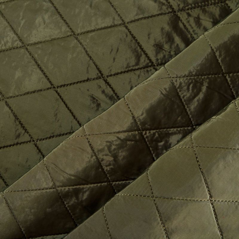 Двухслойная курточная ткань зеленого оттенка, простеганная не крупными ромбами. Нижний слой - синтепон, верхний - полиэстер, по качеству напоминает болонь. Очень мягкая и легкая, пластичная, хорошо драпируется. Прекрасно подойдет для пошива легких пальто, курток, жилетов, накидок-кейпов, объемных сумок.