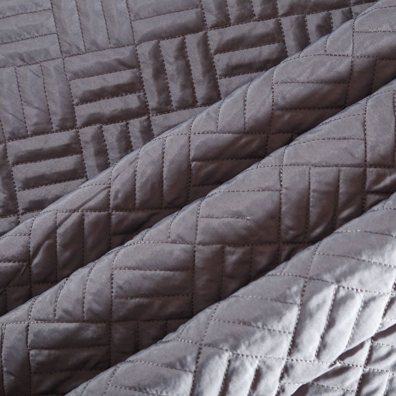 Двухслойная курточная ткань серого оттенка, простеганная фигурной вышивкой нитками в тон. Нижний слой - синтепон, верхний - плотный матовый полиэстер. Очень мягкая и легкая, пластичная, хорошо драпируется. Прекрасно подойдет для пошива легких пальто, курток, жилетов, накидок-кейпов, объемных сумок.