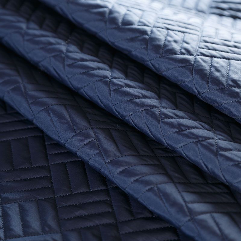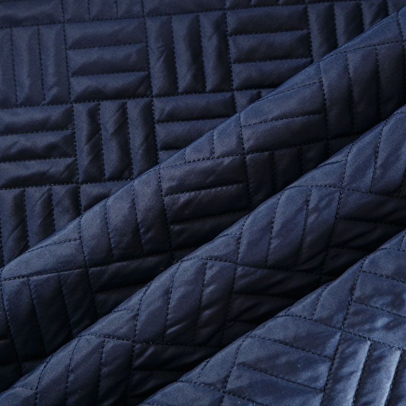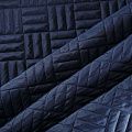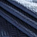 Двухслойная курточная ткань темно-синего оттенка, простеганная фигурной вышивкой нитками в тон. Нижний слой - синтепон, верхний - плотный матовый полиэстер. Очень мягкая и легкая, пластичная, хорошо драпируется. Прекрасно подойдет для  пошива легких пальто, курток, жилетов, накидок-кейпов, объемных сумок.