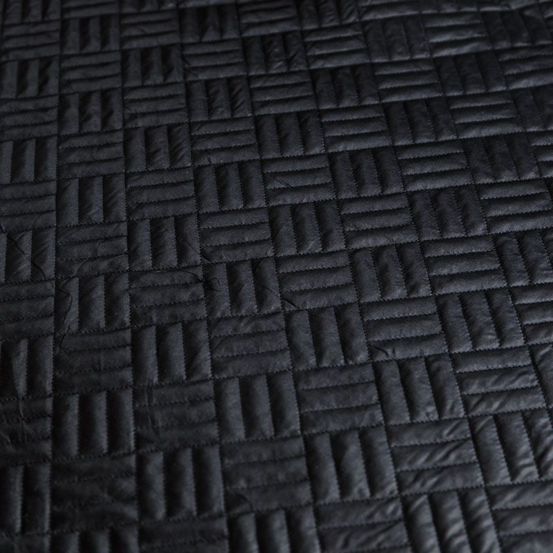 Двухслойная курточная ткань черного цвета, простеганная фигурной вышивкой нитками в тон. Нижний слой - синтепон, верхний - плотный матовый полиэстер. Очень мягкая и легкая, пластичная, хорошо драпируется. Прекрасно подойдет для  пошива легких пальто, курток, жилетов, накидок-кейпов, объемных сумок.