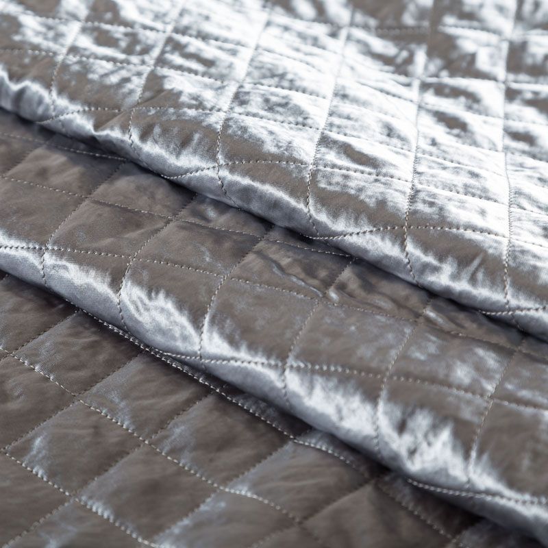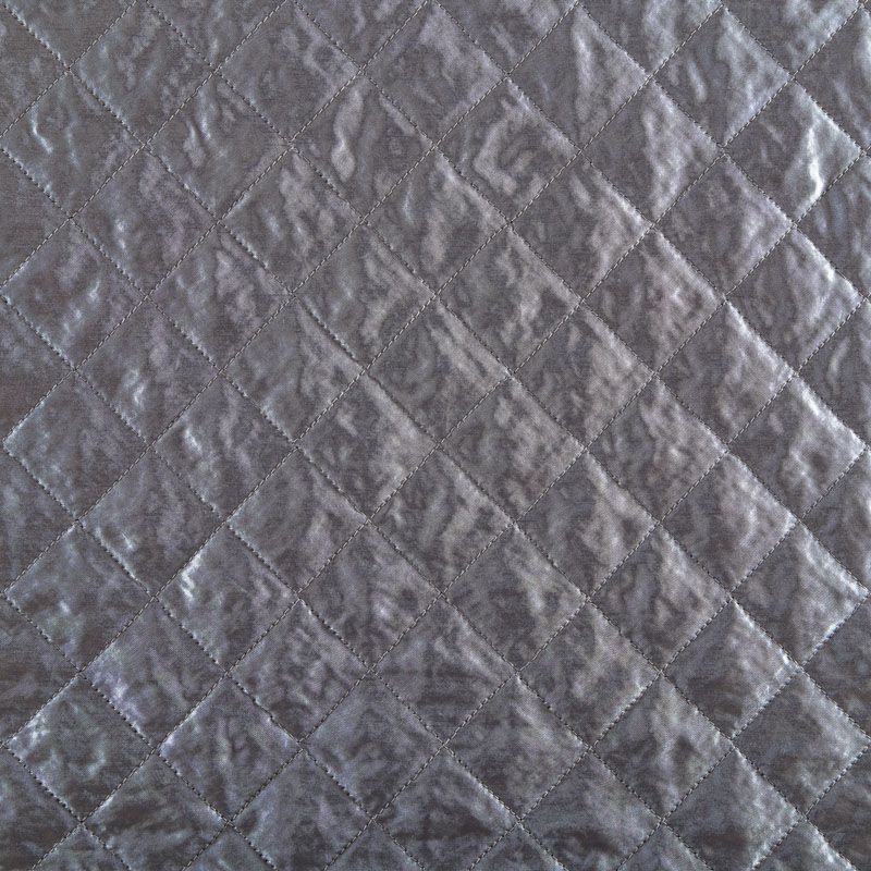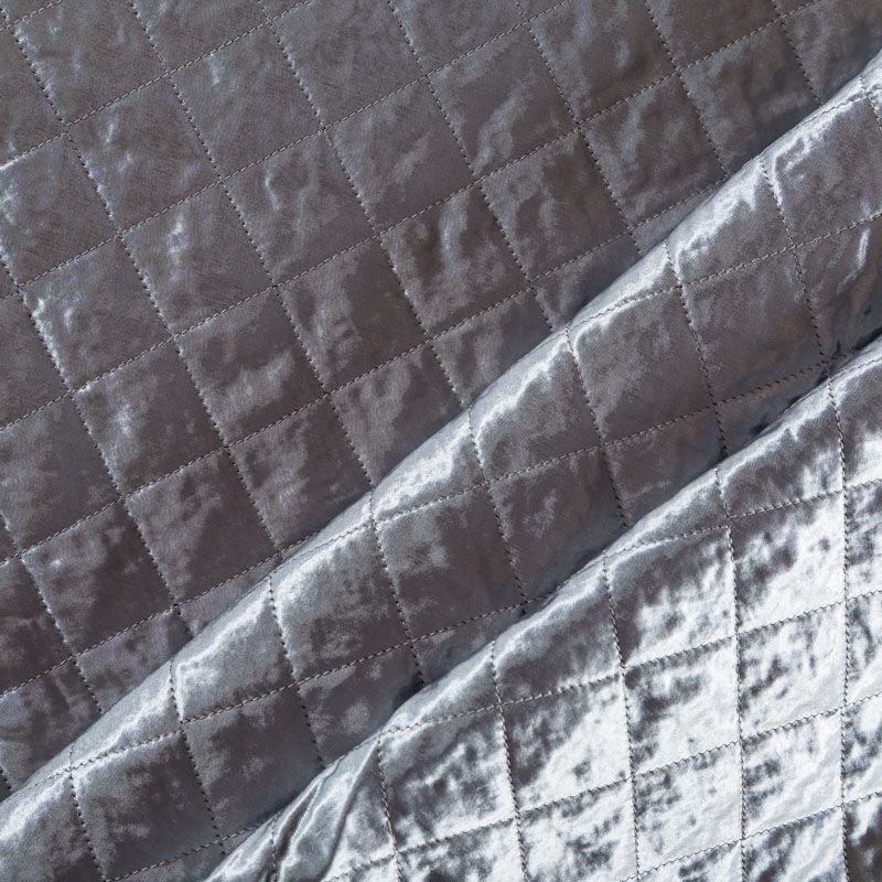 Двухслойная курточная ткань серебристо-серого оттенка с легким блеском, простеганная не крупными ромбами размером 3х3 см. Нижний слой - синтепон, верхний - полиэстер, по качеству напоминает болонь. Очень мягкая и легкая, пластичная, хорошо драпируется. Прекрасно подойдет для  пошива легких пальто, курток, жилетов, накидок-кейпов, объемных сумок.