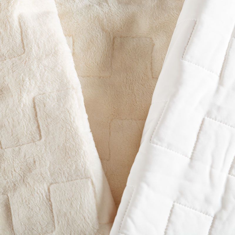 Итальяская двухслойная ткань молочного оттенка, утепленная искуственным коротковорсовым мехом и простеганная геометрическим орнаментом. Нижний слой - нежный, мягкий меховой утеплитель сливочного оттенка, верхний - матовая плотная плащевая ткань. Ткань легкая, пластичная, хорошо драпируется. Прекрасно подойдет для  пошива легких пальто, бомберов, парки, курток, жилетов, накидок-кейпов, объемных сумок.