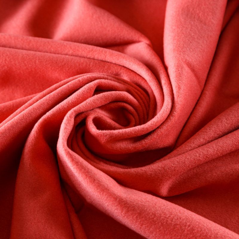 Пальтовая итальянская шерсть в красивом коралловом оттенке. Ткань плотная, достаточно теплая, комфортная для одежды на сезон осень-зима. Полотно имеет короткий ворс. Мягкое и нежное на ощупь, не толстое и не тяжелое, хорошо держит форму. Прекрасно подойдет для пошива женских пальто, теплых костюмов, кейпов, мягких бомберов, жилетов и головных уборов.