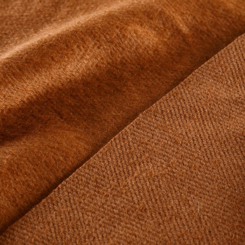 Пальтовая итальянская шерсть в темно-карамельном оттенке. Ткань плотная, достаточно теплая, комфортная для одежды на сезон осень-зима. Полотно имеет мягкий ворс. Нежное на ощупь, не толстое и не тяжелое, слегка держит форму. Прекрасно подойдет для пошива женских пальто, теплых костюмов, кейпов, мягких бомберов, жилетов и головных уборов.