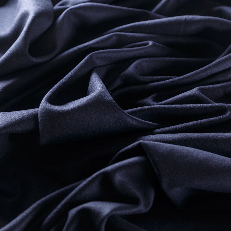 Пальтовая итальянская шерсть в глубоком темно-минем оттенке. Ткань плотная, достаточно теплая, комфортная для одежды на сезон осень-зима. Полотно имеет короткий шлифованный ворс. Мягкое и нежное на ощупь, не толстое и не тяжелое, хорошо держит форму. Прекрасно подойдет для пошива женских пальто, теплых костюмов, кейпов, мягких бомберов, жилетов и головных уборов.